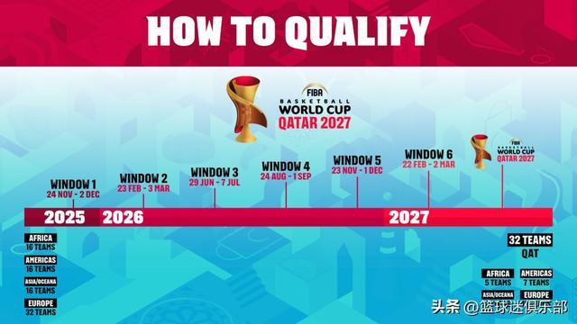 本届男篮世界杯亚洲区预选赛,来自亚洲和大洋洲的16支球队,将会在6个窗口期的比赛内,争夺2027年国际篮联篮球世界杯亚太区的7个席位。