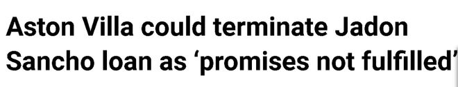 但《每日邮报》报道称,曼联在夏窗截止日同意将桑乔出租给维拉,虽然没有买断条款,但当时双方约定一件事:租借不得中途终止,曼联不能提前召回他,维拉也不能提前退货。这意味着无论桑乔表现如何,他都会在维拉效力完这个赛季。