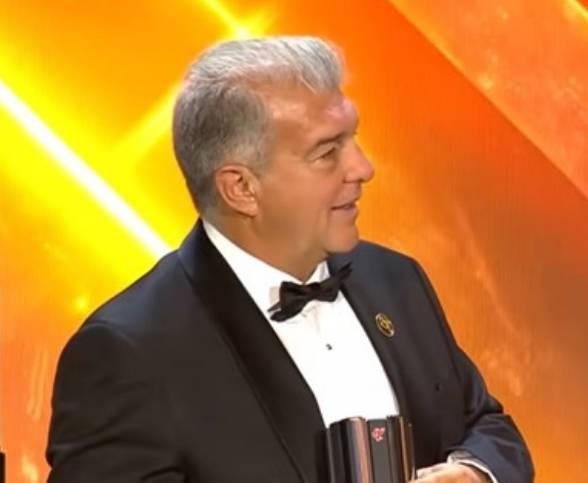 弗里克当选环足奖2025年西甲最佳教练奖,奖杯由拉波尔塔代领